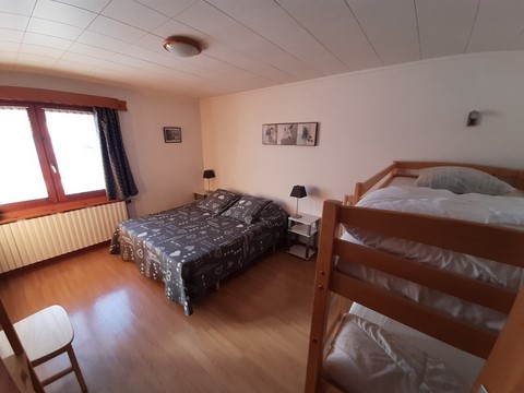 The second bedroom has two beds of 90 * 190 with bedside tables, 1 folding bed 1 place, 6 pillows, 4 duvets 150x200. 1 180x200 cover, 1 large closet wardrobe.A flat screen television. 1 work table with chair and electric socket.