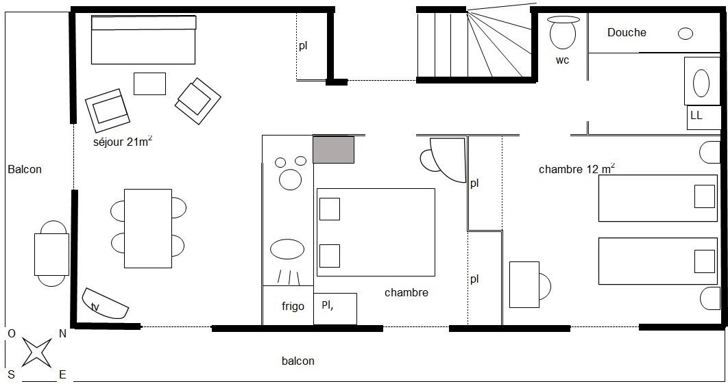 Furnished accomodation 3 rooms 2 bedrooms, for 4/6 people.. 2nd floor